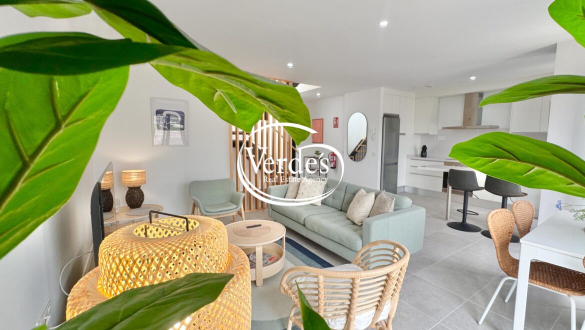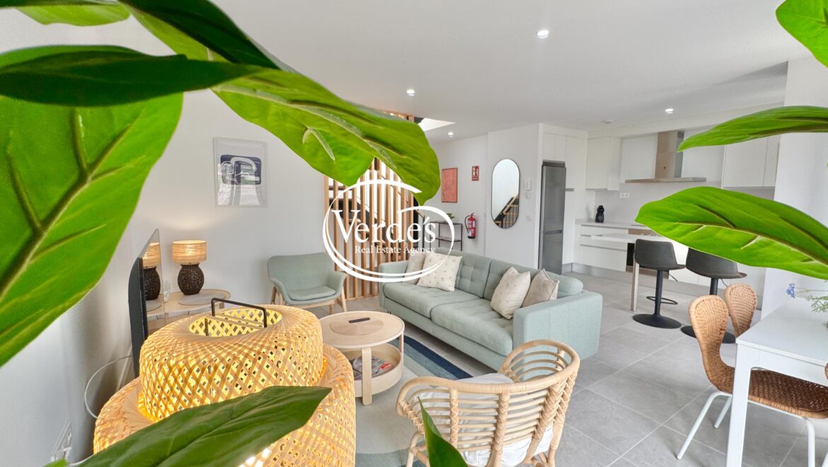 Duplex-Penthouse mit zwei Schlafzimmern und Meerblick zu verkaufen, gelegen in einem neu erbauten Gebäude ganz in der Nähe des Strandes in Playa de San Juan.