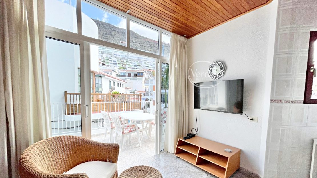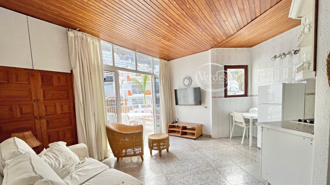Zu verkaufen ein Schlafzimmer Wohnung mit Terrasse und privatem Solarium im Herzen von Acantilados de Los Gigantes. Bestehend aus einem geräumigen Schlafzimmer, Wohn- / Esszimmer, Bad, Seitenterrasse und private Sonnenterrasse mit Blick.
