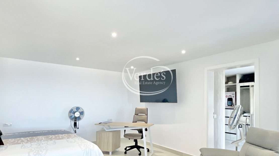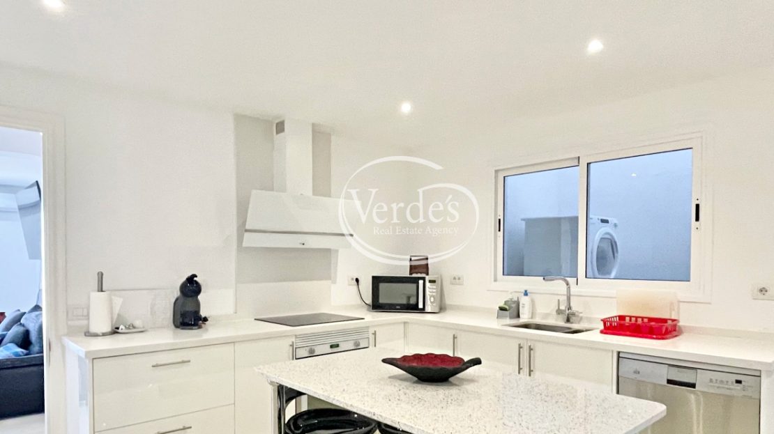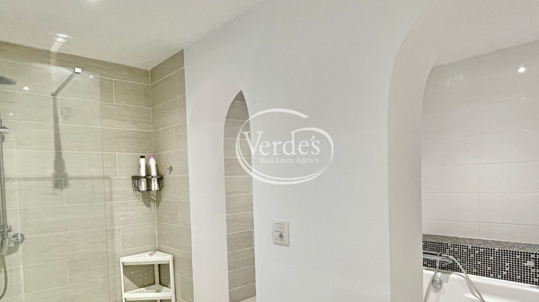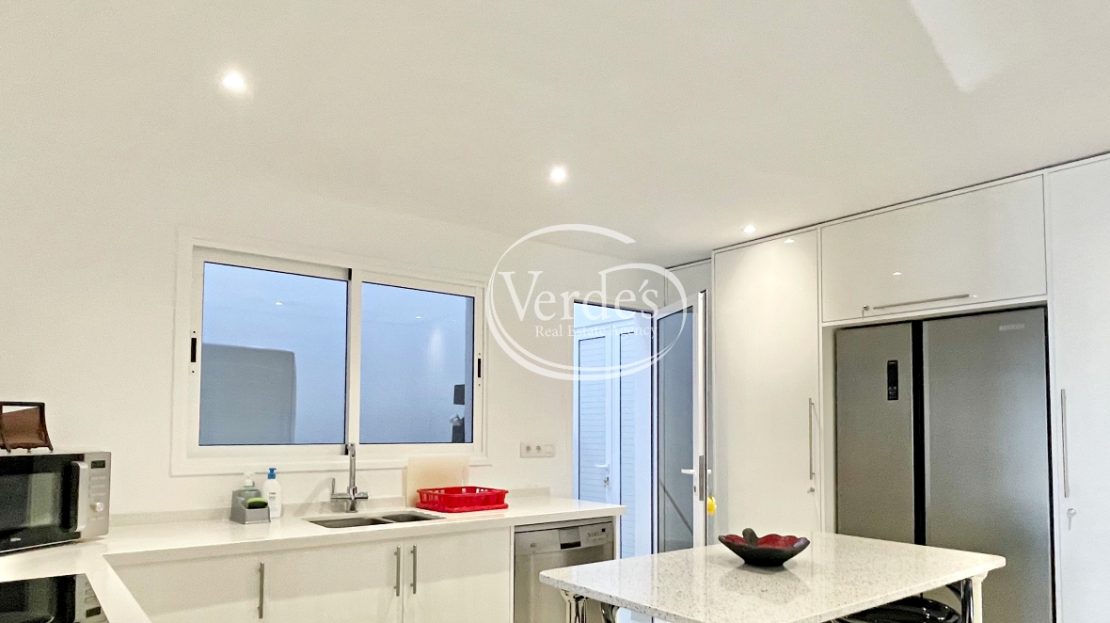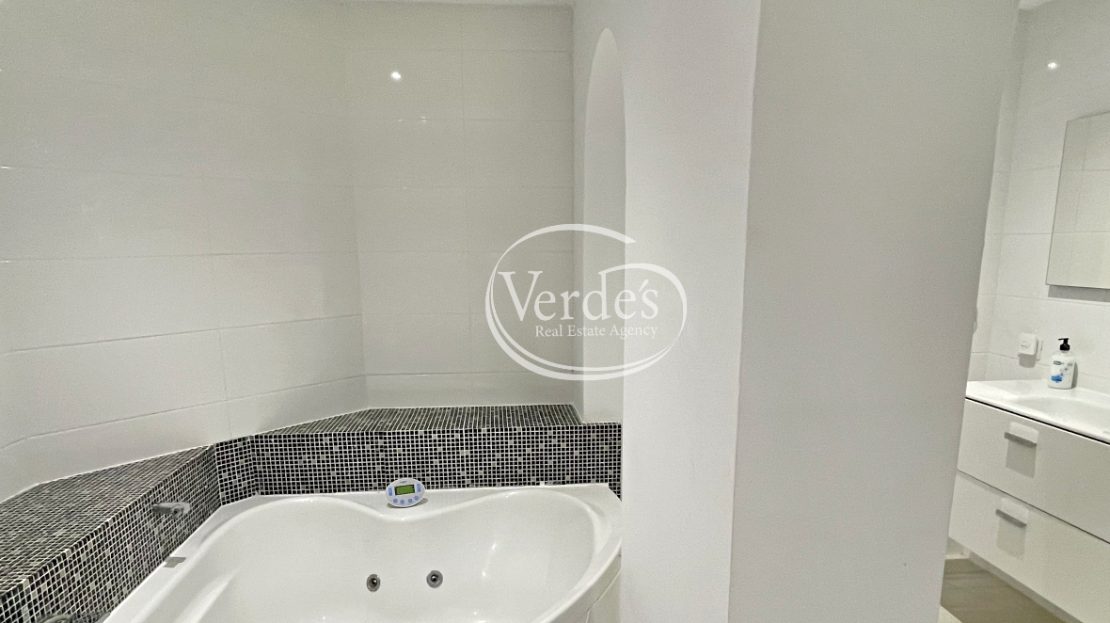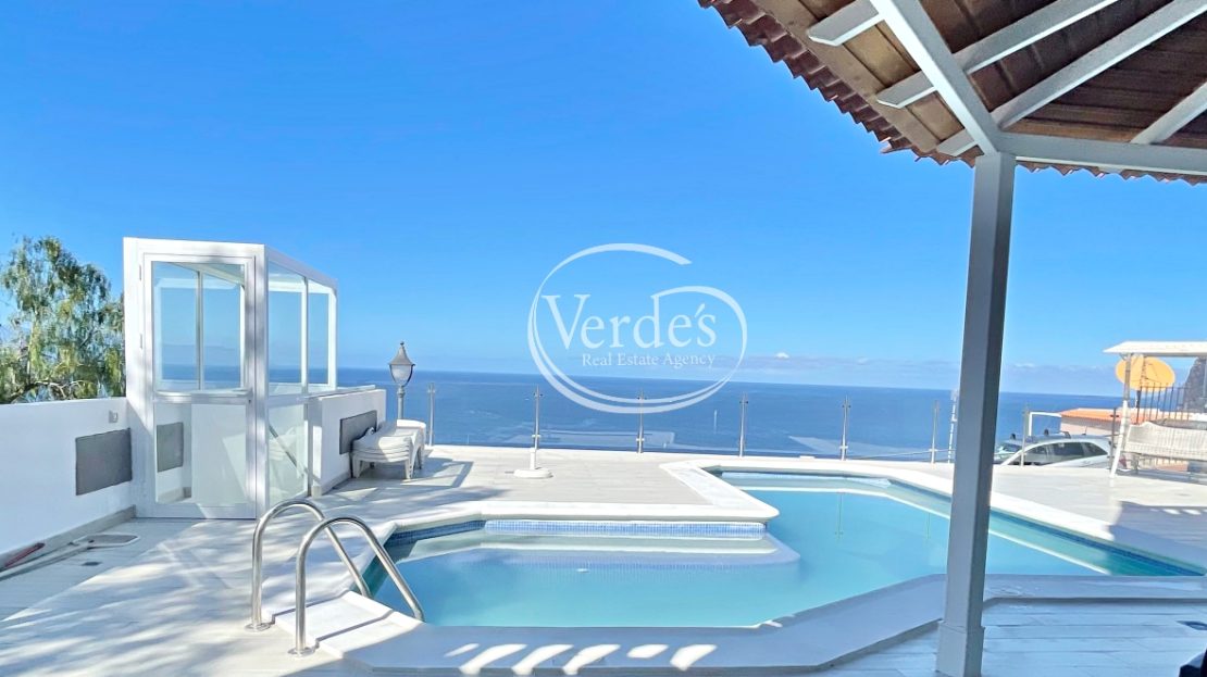 Private pool with sea and cliff views is situated on the first floor, with a spacious living-dining room with the same views, equipped kitchen and a spacious bedroom en suite with a large dressing room. On the first floor, there are two further large bedrooms with balconies and excellent views. One of these has a small kitchen inside, Jacuzzi in the bathroom and direct access via stairs to the swimming pool.