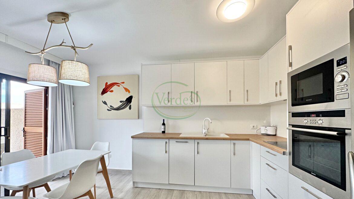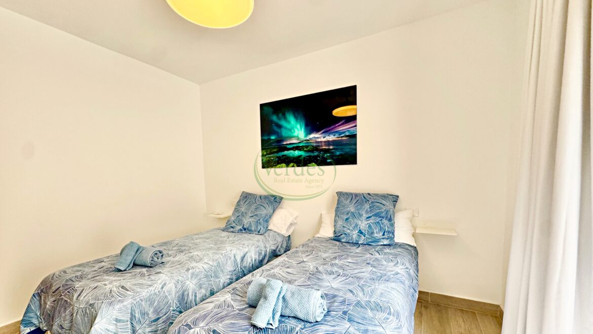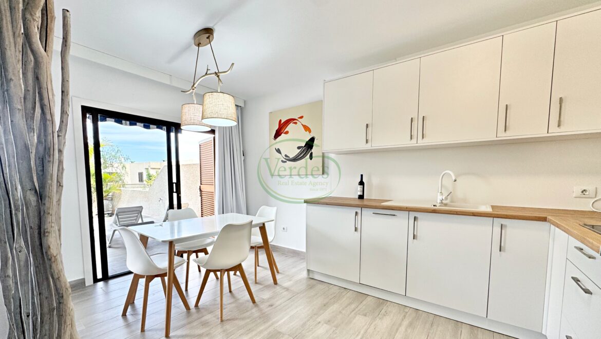 Situado en el complejo Tamara, en la primera planta ideal para personas con movilidad reducida o familias, dos dormitorios, dos baños con una amplia terraza con vistas a los acantilados y el mar , espacioso salón comedor y terraza trasera desde donde se puede acceder desde ambos dormitorios y aprovechar el sol de la mañana.